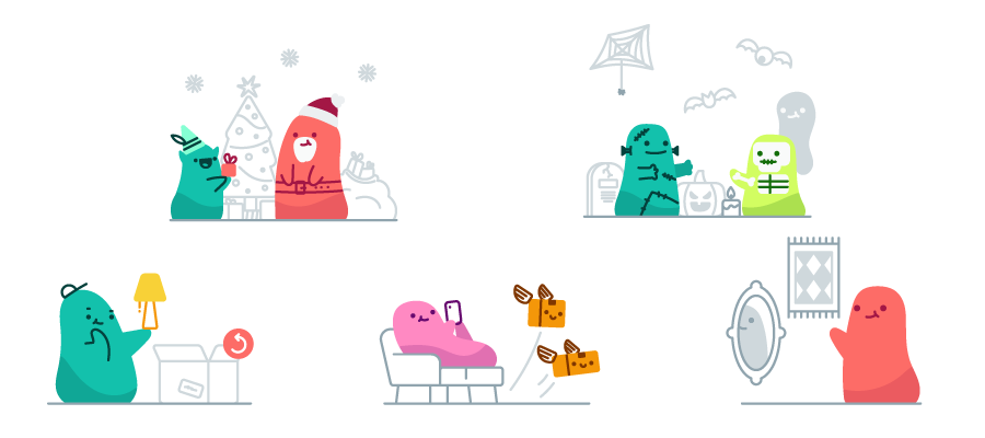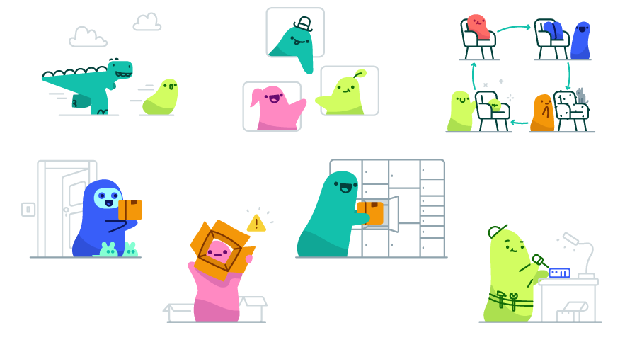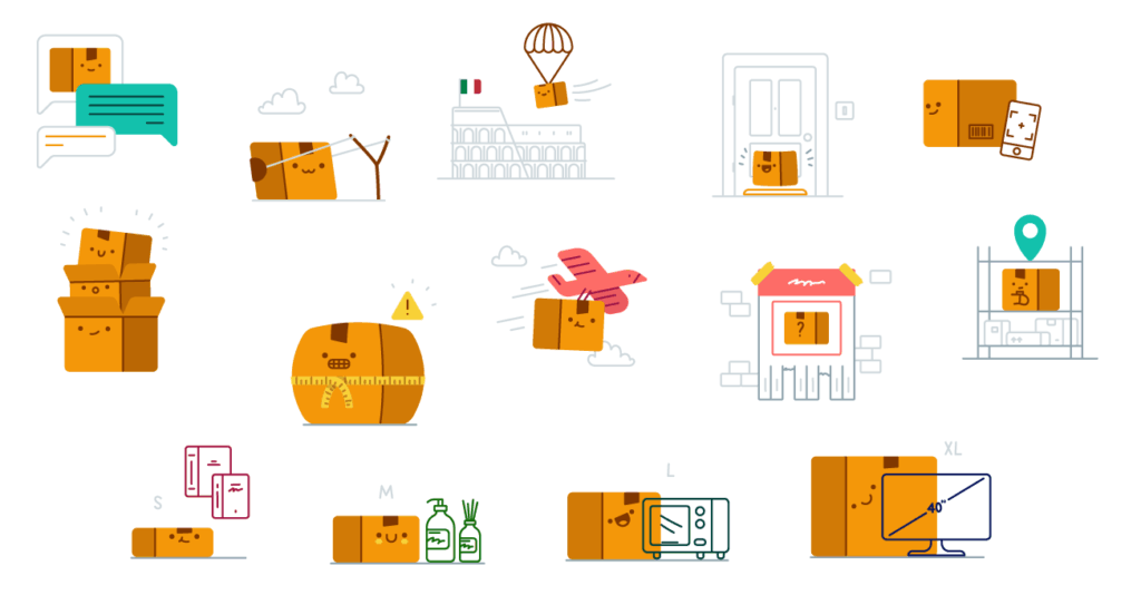 Wallapop is a Spanish marketplace for exchanging used goods. A set of Common characters, Box, and Animated objects to relate all the actions and stories that happen inside the Wallapop app. Flexible illustration system and scene-building tooltip to help all the in-house illustrators and designers create consistent images.